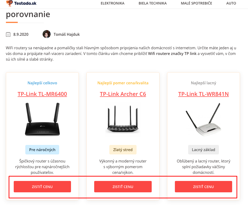 Rozbalený widget v článku (napr. recenzia, test, porovnanie atď.) obsahuje 3 – 10 ponúk e‑shopov s porovnaním cien a preklikom do e‑shopu.