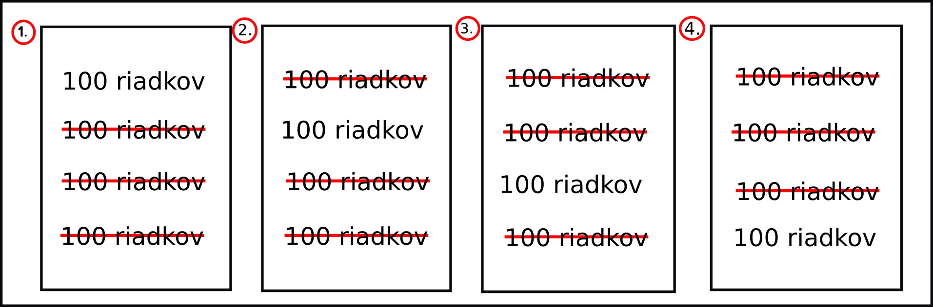 Uvažujme teda, že máme v Mergade pravidlo na hromadné premenovanie kategórií, ktoré má 400 riadkov a my z neho urobíme 4 hromadné pravidlá po 100 riadkoch: